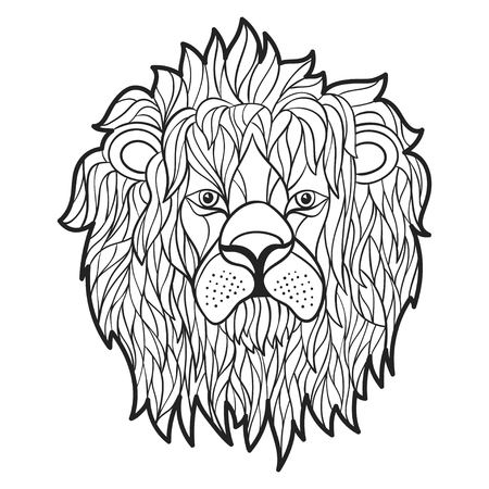 ベクトル モノクロ手ライオン顔の描かれたイラストです 白い背景で隔離の高詳細ページを着色します 自由奔放に生きるスタイル T シャツ グリーティング カードやポスターをデザインします のイラスト素材 ベクタ Image